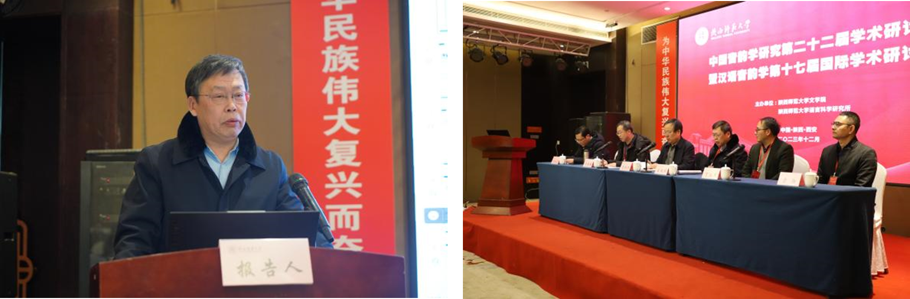 2023年12月15日至17日,中国音韵学研究第二十二届学术研讨会暨汉语音韵学第十七届国际学术研讨会在陕西师范大学召开。会议经教育部批准,由陕西师范大学文学院、语言科学研究所主办。会议主题为“为往圣继绝学,为中华民族伟大复兴而奋斗——汉语音韵学研究的继承和发展”。来自国内外80余所高校和科研机构的180余位代表、嘉宾通过线上线下参加了会议,123位学者报告了自己的最新研究成果。我院王兆鹏教授带领博士生朱玲莉,硕士生宋晗飞、侯雪洁,本科生牟丹婷线下参会,青年教师翟春龙线上参会。