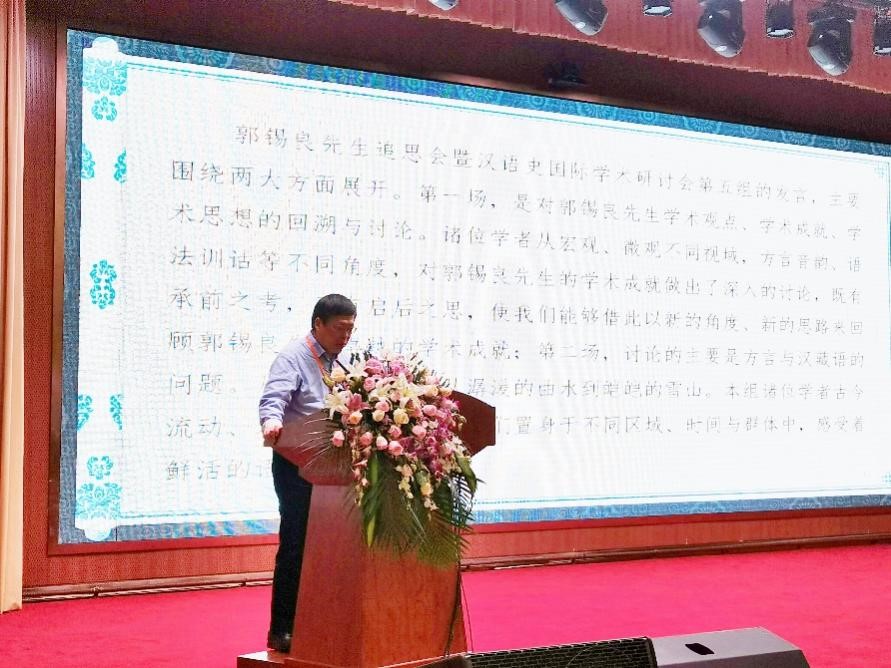 王兆鹏作《从通假看<汉字古音表稿>韵部归字的合理性》的小组报告并主持小组讨论。王兆鹏选取传世及出土文献中的通假字作为研究材料,采用集证法和统计法,用通假数据分析郭锡良从《汉字古音手册》到《汉字古音表稿》中十个具体字例的部归属调整的合理性和必要性,以此展现郭锡良严谨求实的学术态度。