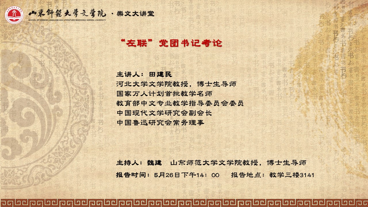 讲座预告:田建民——“左联”党团书记考论