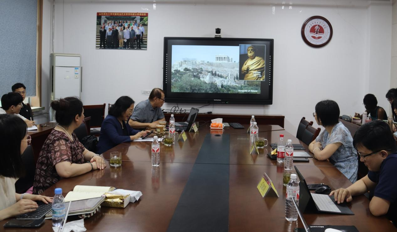 2024年5月23日,中国人民大学文学院耿幼壮教授作客山东师范大学文学院崇文大讲堂,为师生做了题为“索福克勒斯《俄狄浦斯王》的现代阐释”的讲座。本次讲座由山东师范大学文学院教授、博士生导师于冬云老师主持,比较文学与世界文学专业的杨黎红、刘亚、毛建雷老师,比较文学与世界文学专业的博士、硕士研究生及汉语言文学专业的部分本科同学聆听讲座并参与交流。