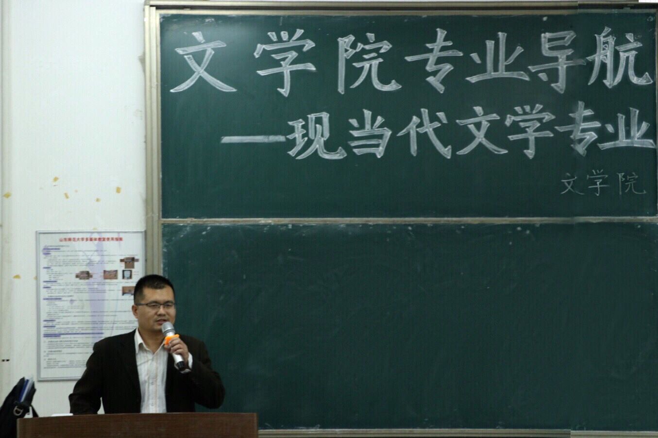 10月30日晚,文学院于长清湖校区综合教学楼C区218教室举办“文学院专业导航——现当代文学专业”交流会,本次大会邀请文学副教授、硕士生导师陈夫龙担任主讲人,由文学院党委副书记巩固主持,2017级二百余名同学到场聆听。