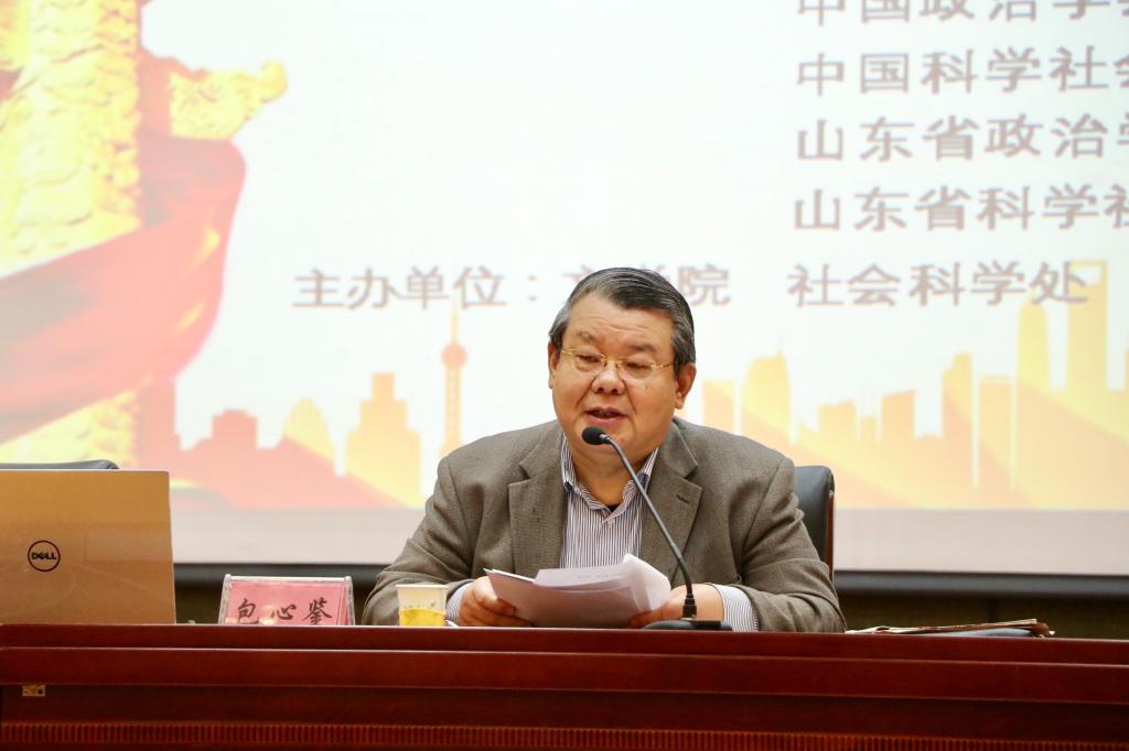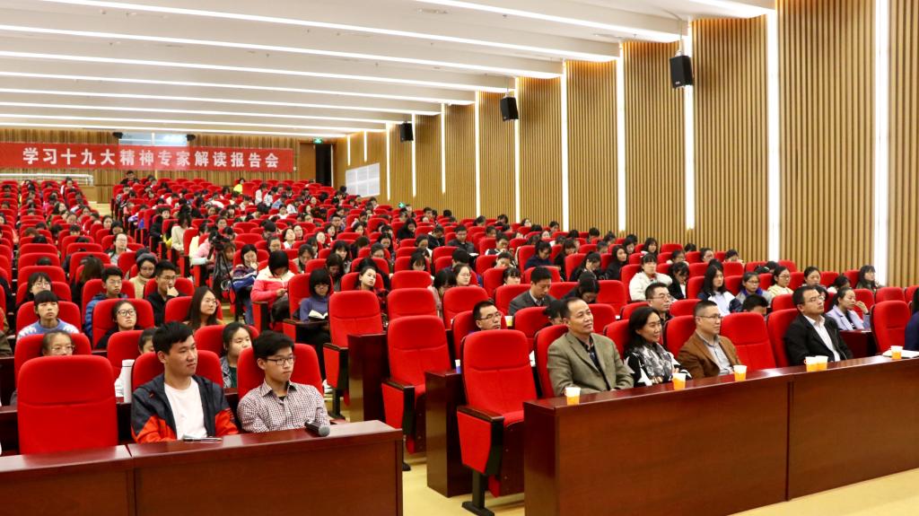 11月6日晚,文学院在长清湖校区图书馆报告厅举办学习党的十九大精神专家解读报告会暨第559期社科大讲坛。山东省社会科学界联合会研究员、中国政治学会副会长、中国科学社会主义学会副会长包心鉴担任主讲人,文学院院长杨存昌主持会议,文学院党委书记贾海宁、副院长邹强、党委副书记巩固、院长助理刘兆波与学院各教工党支部书记、团委书记、辅导员出席会议,200多名学生到场聆听。