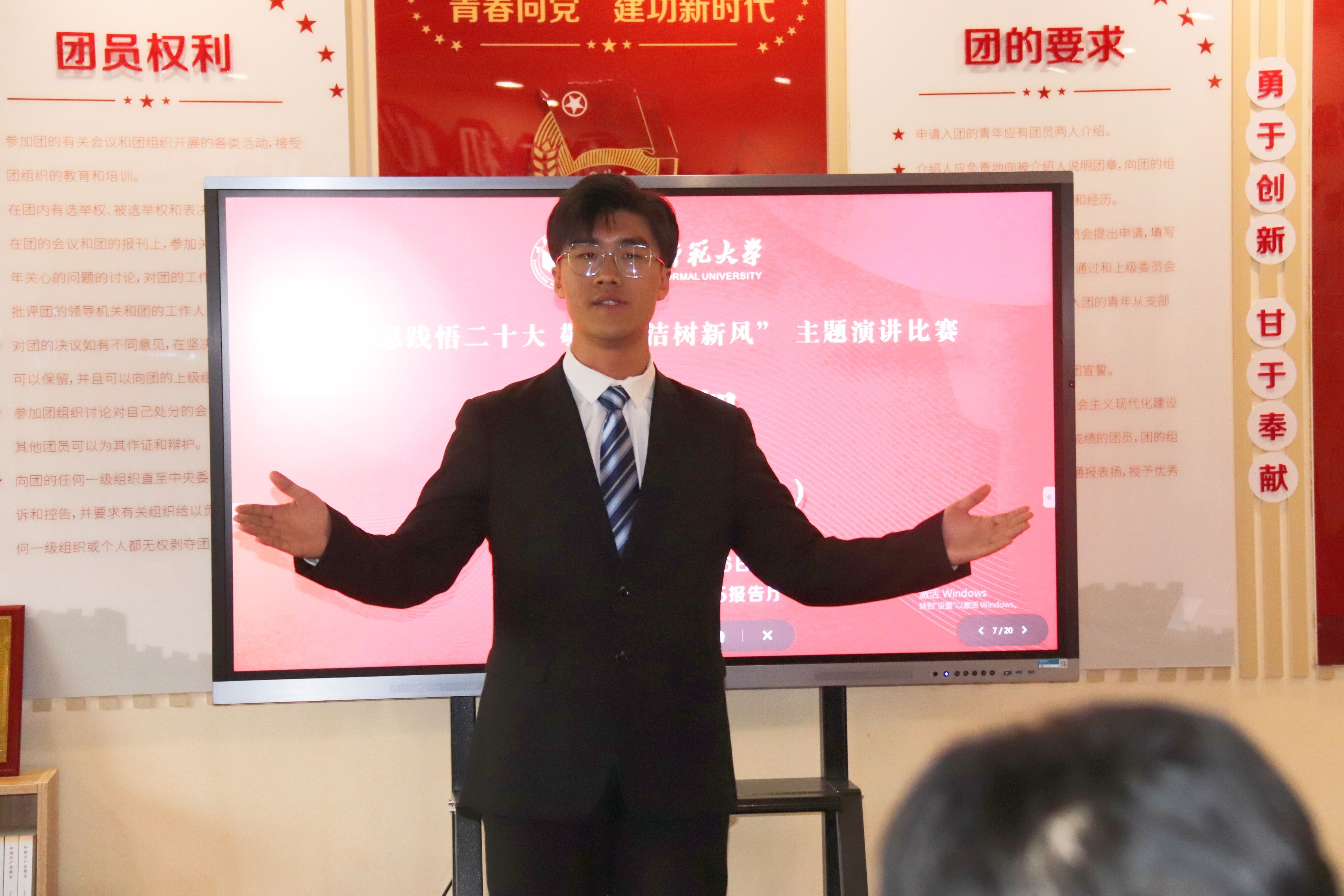 文学院选手王恒盛更是从自身角度出发,声情并茂地阐明了作为“头顶中华万里苍穹,立足脚下千载厚土”的新时代青年应如何“借两袖清风扶摇千里,化万里山河藏进胸膛”,为大学生树立正确的人生观、价值观、学习观提出了合理的建议。