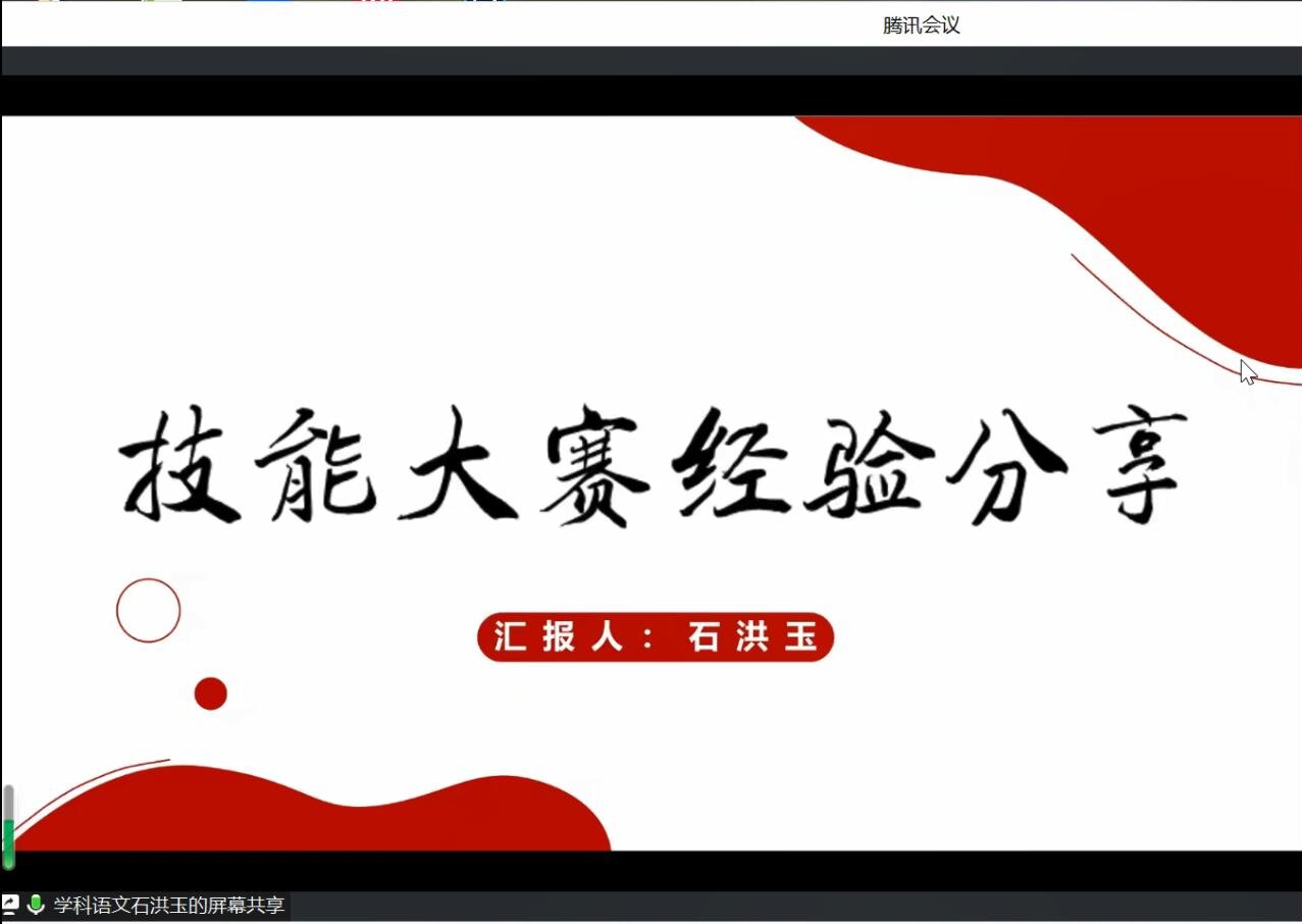 随后,石洪玉以自己抽取的题目《迷娘》为例,从备赛过程、赛中发挥、赛后收获三个方面讲述这次比赛对能力的锻炼和提升;薛晓晗注重学生主体意识的发掘,通过演示《老人与海》的授课片段生动地向参会同学阐释何为“符合学生表达方式的口语”,激励同学们用灵动活泼的课堂设计向评委展现扎实的教学功底;段昊辰结合自身成长经历及发自内心对教育的热爱,由浅入深地引入教师技能大赛关键能力的塑造过程及陌生化的方法,干货满满;管文悦提出“教师要有高于文本五倍到十倍的理解才能备好课”的观点,着重强调了备课对于教学的重要意义。