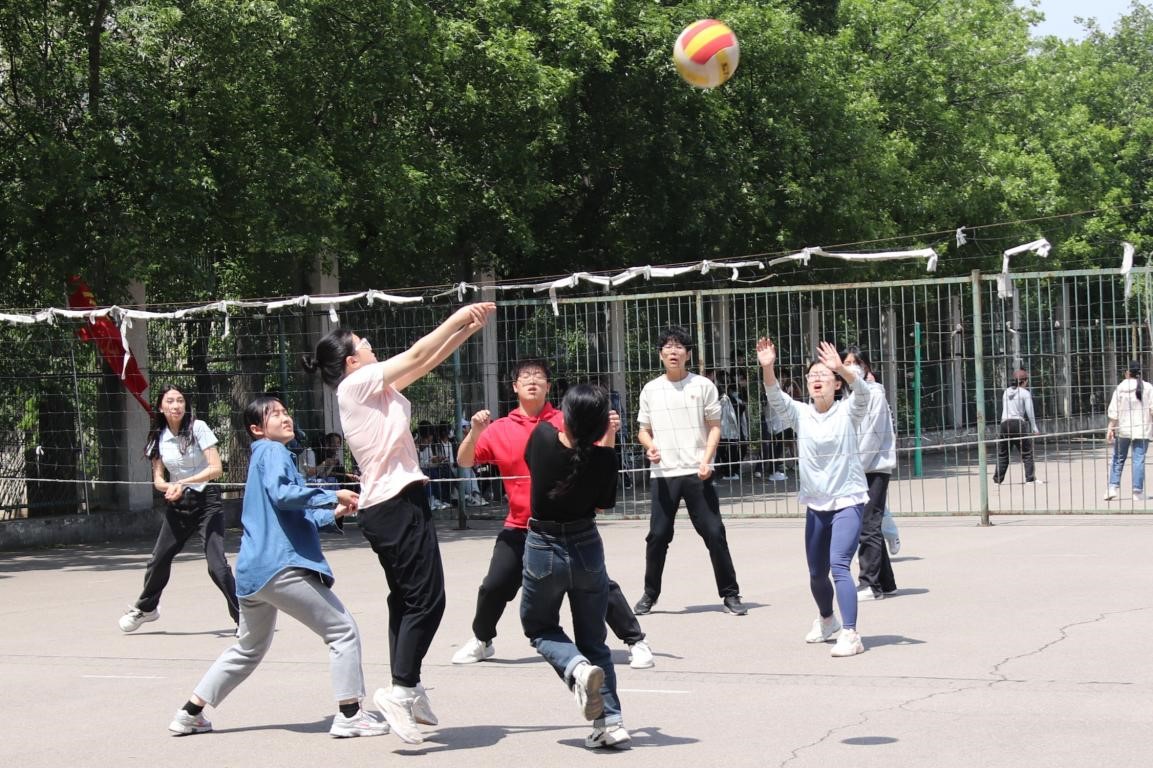 同时,在北侧场地进行的2022级气排球决赛场上更是热火朝天。文综本2201班的李钇霖义无反顾地一次次跳扑,尽力为班级争夺球权;文学类2202班的杜思翰在侧方的精彩补扣,赢得对手与队友的声声喝彩。四支队伍始终秉持“友谊第一,比赛第二”的原则,在比赛过程中一分一分去拼、一场一场去争,展现出团结协作、永不言弃的精神面貌。经过一番激烈的对决,中文本2105班与文综本2201班分别以2-0、2-1的成绩斩获冠军。