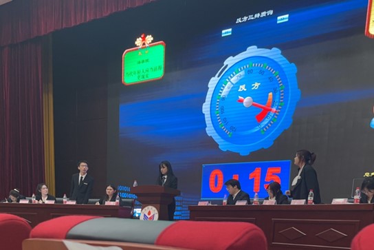 5月14日晚,山东师范大学校辩论赛决赛在长清校区树蕙堂圆满结束。本次比赛由共青团山东师范大学生命科学学院委员会主办,山东师范大学辩论队承办,共青团山东师范大学法学院委员会和共青团山东师范大学新闻与传媒学院委员会协办。本场比赛邀请山东中医药大学鲁鑫彧、山东师范大学陈楠、山东师范大学陈雁泽三位同学担任评委。比赛双方分别为正方法学院与反方文学院,文学院2021级本科生李浩然、2022级本科生杨欣彤、田梦宇、王思媛代表文学院辩论队出战。