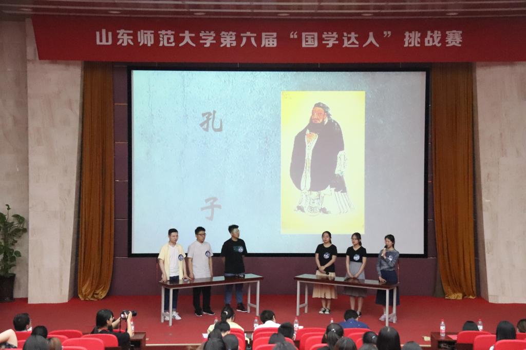 5月16日下午,千佛山校区教学三楼报告厅内,文学院“山东师大之春”系列活动之第六届“国学达人”挑战赛正举行得如火如荼。历经层层选拔,来自不同学院的十二名选手齐聚一堂参与角逐。历史文化学院赵树国、文学院魏代富、曹琳三位老师担任评委,文学院党委书记贾海宁、校团委副书记张萌、文学院党委副书记巩固、团委书记李金波以及各年级辅导员也莅临现场,同现场观众一同观赛,领略国学之美。