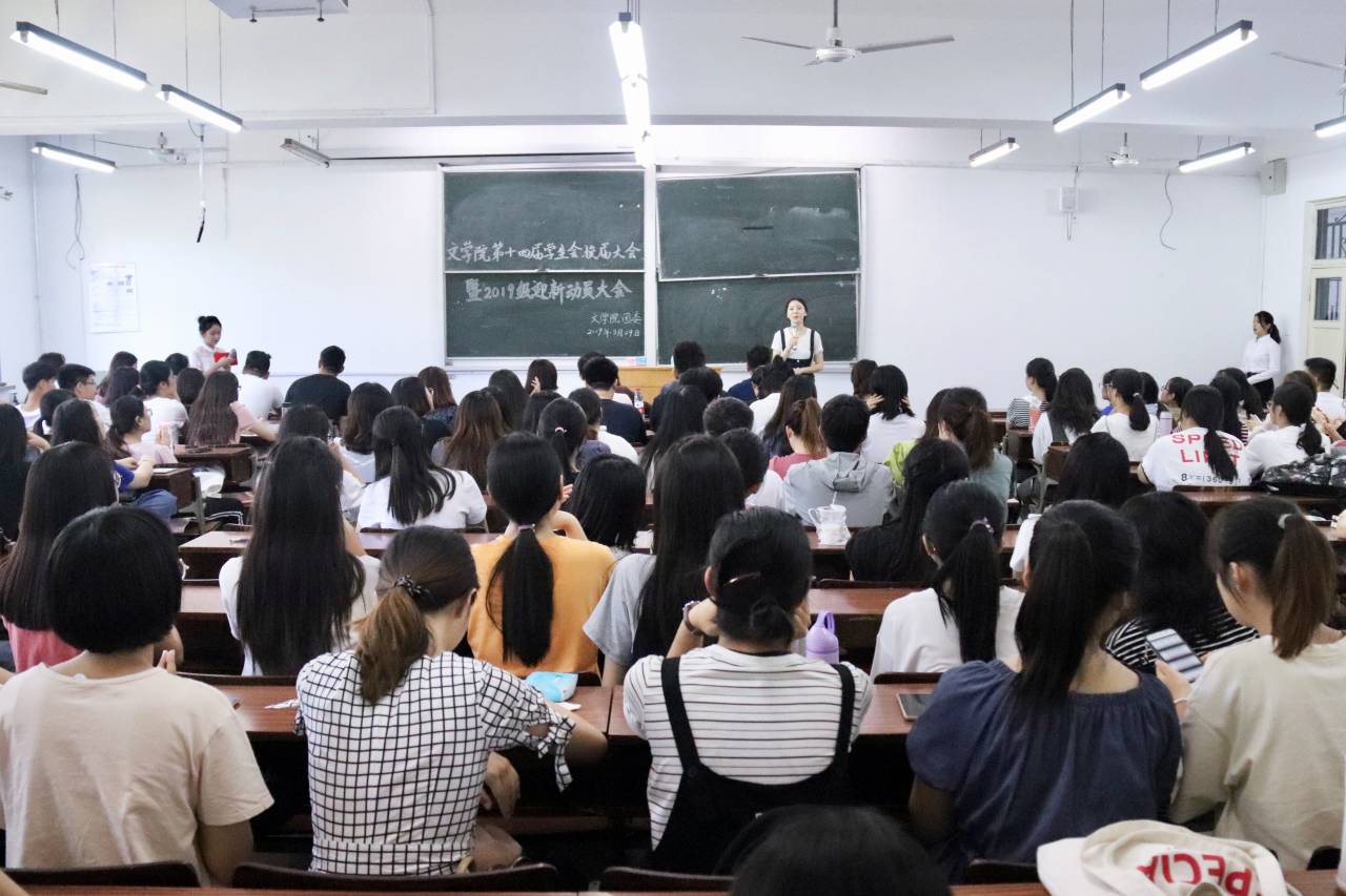 为了加强学生干部队伍建设、提高学生会服务能力,8月29日中午,文学院于千佛山校区教学三楼3359教室举行文学院学生会换届大会暨迎新动员会。会议特别邀请文学院党委副书记刘兆波,团委书记、2016级辅导员李金波及各年级辅导员出席。全体学生会成员参加此次会议。