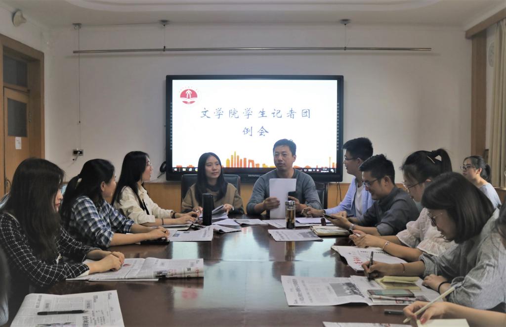 为推动新学期文学院学生记者团工作顺利开展,提升记者团工作水平,9月19日下午,文学院学生记者团于教学三楼3320会议室举办新学期第一次全体例会。文学院学生工作办公室主任、团委书记李金波,研究生辅导员徐金参会,并与记者团全体成员一起规划新学期记者团工作。记者团副团长杨鸿飞主持会议。