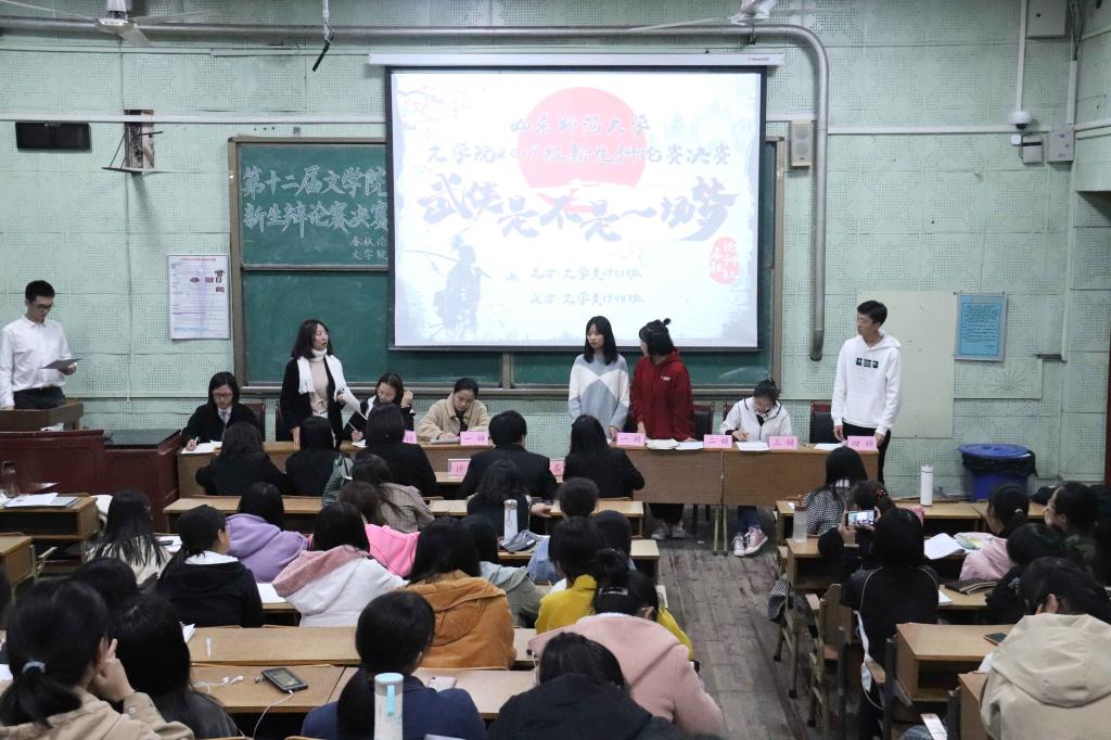10月26日晚,文学院2019级新生辩论赛决赛于教学二楼2313教室圆满落幕。本次比赛由校辩论赛最佳辩手张驰、李逸轩,院辩论赛最佳辩手黄湘钰、曲玲、李鲁华担任评委。文学类1901班与文学类1908班分别作为正方和反方,针对“武侠是/不是一场梦”展开辩论。