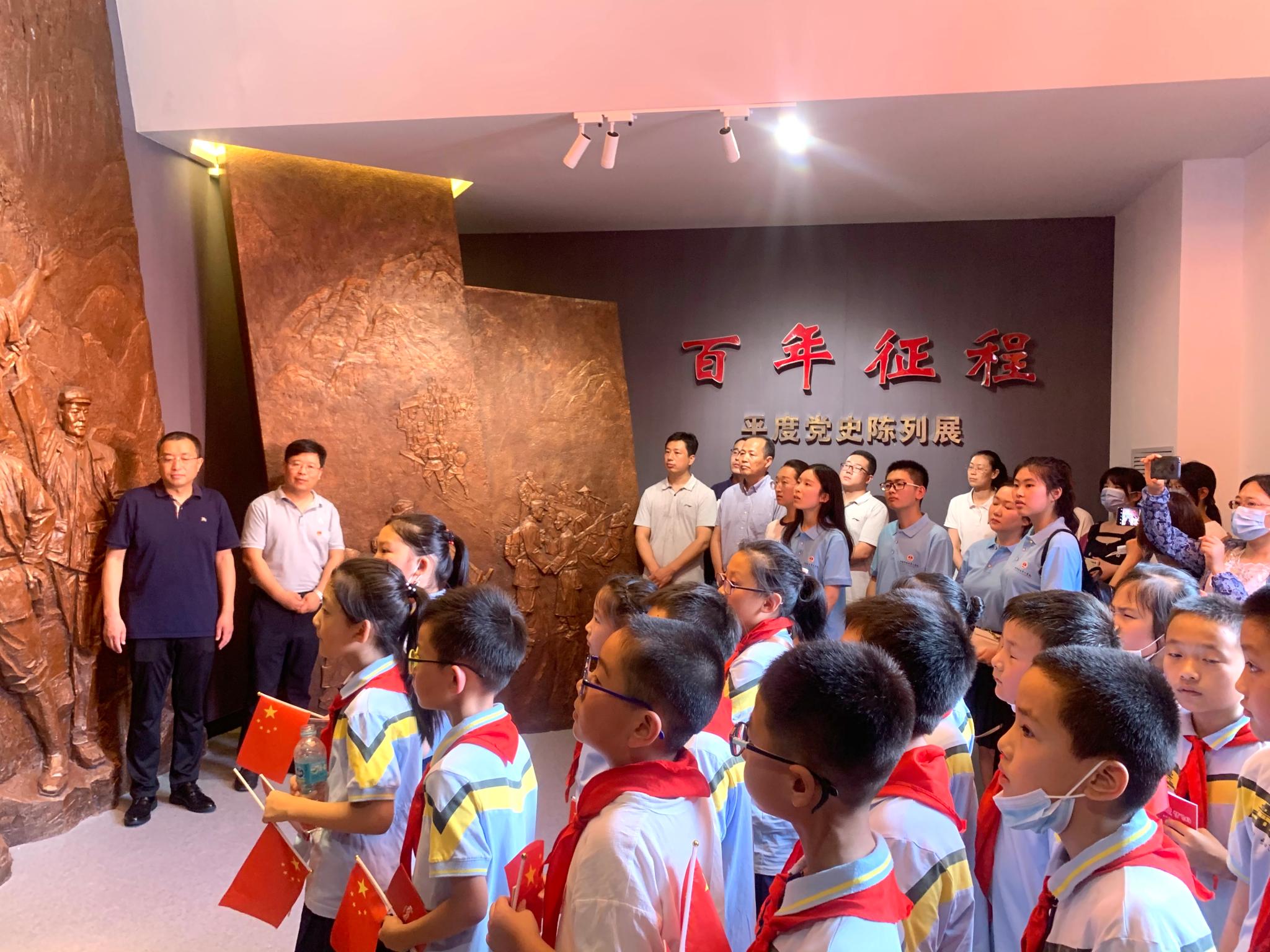 7月17日,学院领导老师在实践队成员的引领下抵达平度市党史馆进行参观学习,平度市委宣传部、平度市文联和平度团市委相关领导一起陪同参观调研。在党史馆解说员的引导下,相关领导老师、实践队成员及40余名中小学生和家长代表一同重温平度峥嵘的革命历史岁月,缅怀那些忠勇无畏的革命先烈。这场红色文化之旅,令大家印象深刻,感触颇深。通过参观调研,平度的百年党史及发展令大家心灵震憾,真切感受到了党带领全国各族人民英勇斗争的艰难,体验到了党在开拓奋进中展现出的坚定信念、强烈责任、睿智思想和强大凝聚力,大家一致表示要铭记红色历史,红心向党、薪火相传,为中华民族的伟大复兴贡献自己的一份力量。