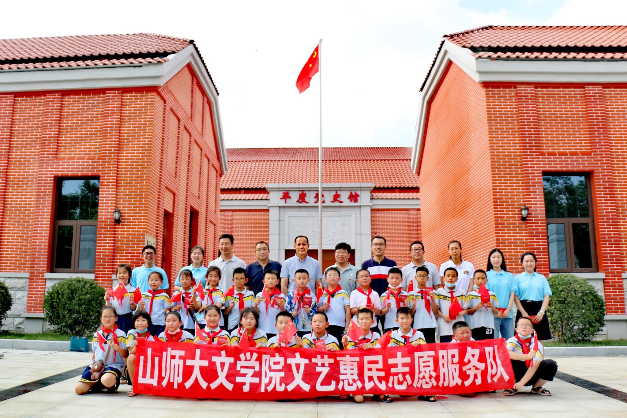 7月17日至18日,山东师范大学文学院“大学生暑期‘三下乡’社会实践文艺惠民志愿服务队”到青岛平度市党史馆和蓝树谷青少年世博园民俗馆开展调研和文艺宣讲实践活动。文学院党委副书记刘兆波,团委书记李金波,辅导员张建、张海洋参与调研指导了此次活动。