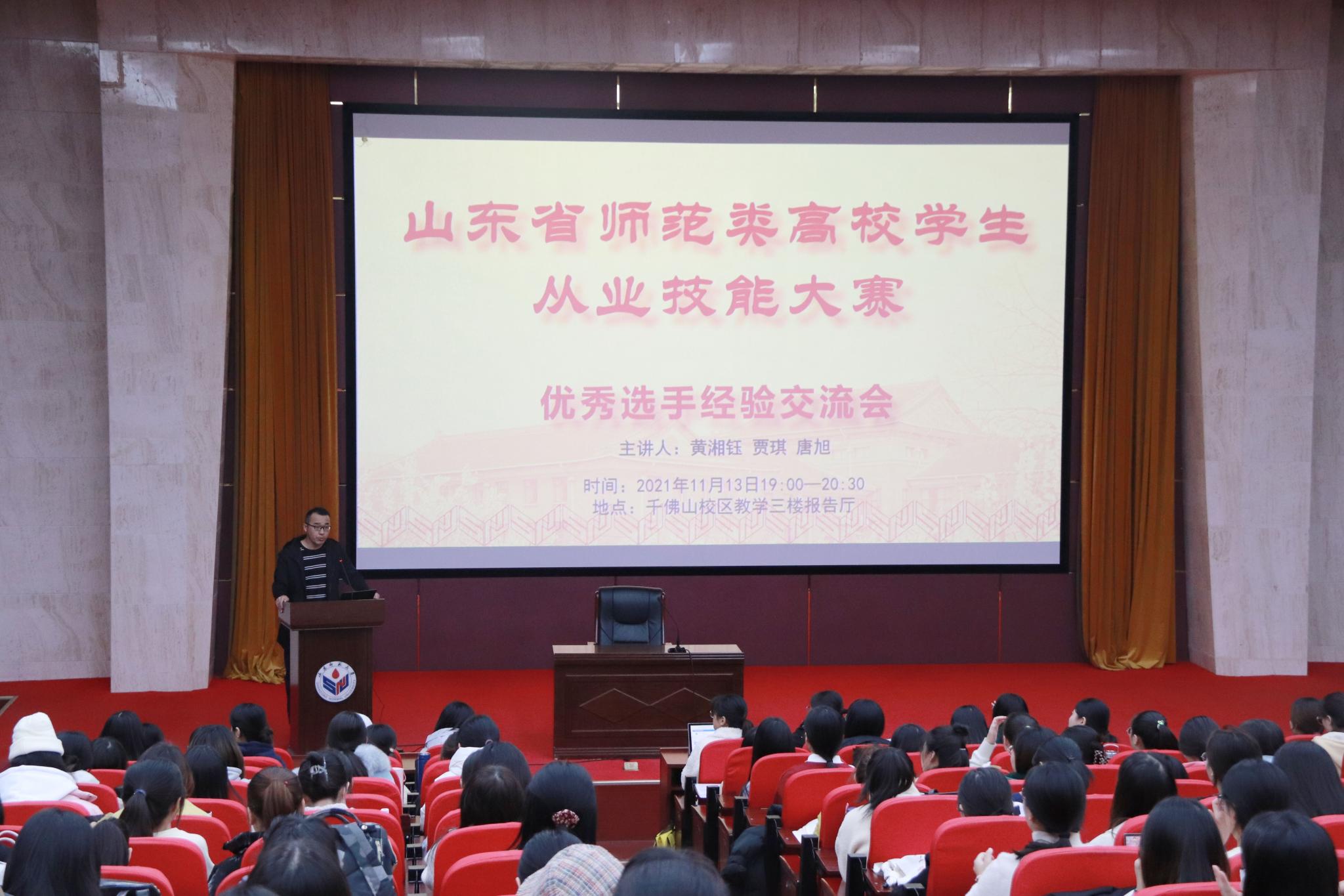 为提升学院师范生的从业技能,增强学生的专业教学理念,11月13日晚,文学院在千佛山校区教学三楼报告厅举行第九届山东省师范类高校学生从业技能大赛优秀选手经验交流会。本次交流会由2019级辅导员张建主持,第九届大赛优秀选手黄湘钰、贾琪和唐旭担任主讲人,文学院2019级全体师范类学生到场参与活动。
