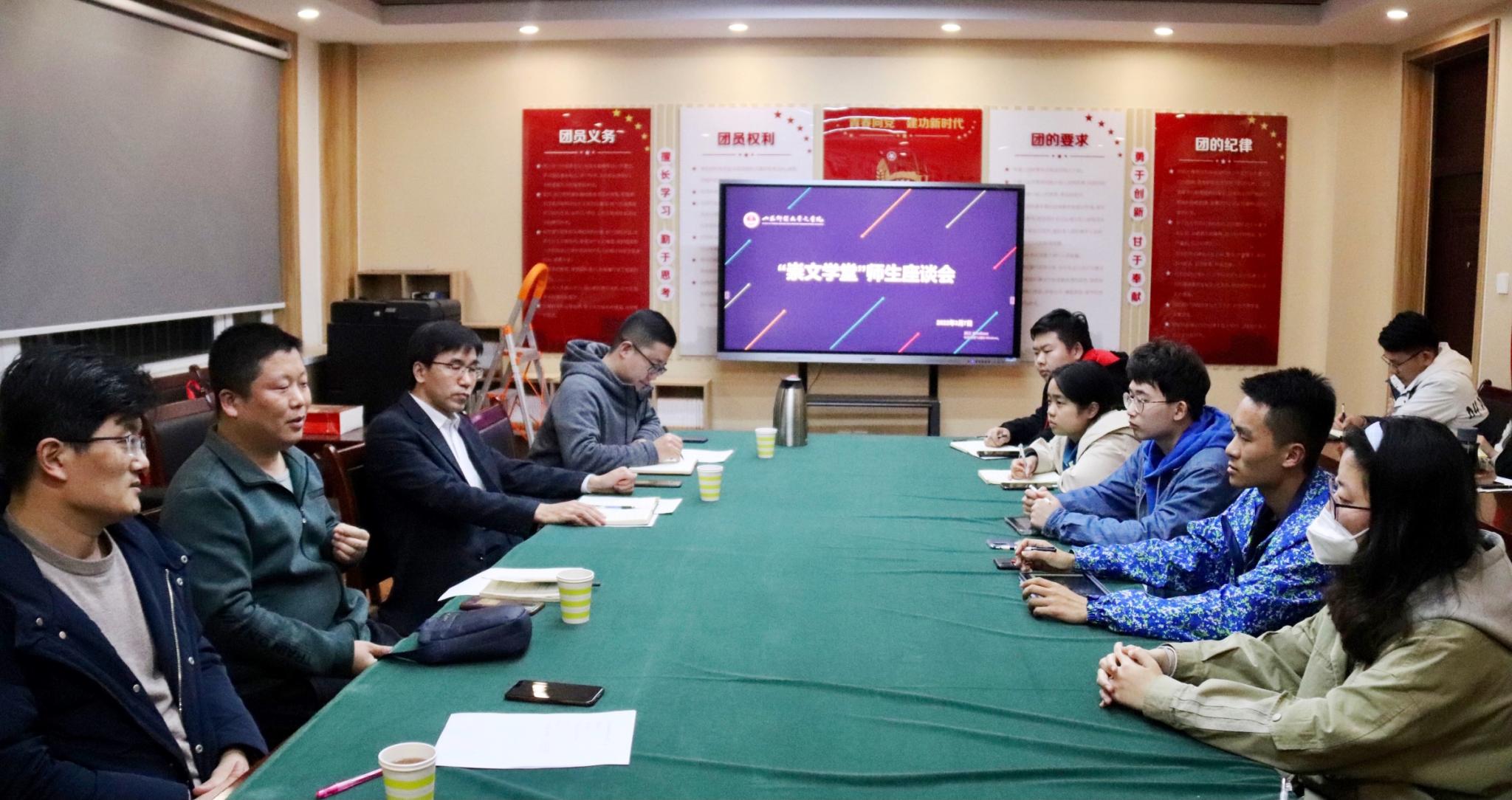 3月7日晚,文学院在千佛山校区教学三楼3205会议室召开“崇文学堂”师生座谈会。“崇文学堂”导师组副组长刘英波,导师组成员王培峰、范洪杰,2020级辅导员张海洋及部分学员代表参加了座谈会。座谈会由刘英波主持。