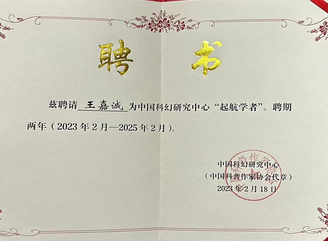 文学院博士生王嘉诚入选中国科幻研究中心首批“起航学者”