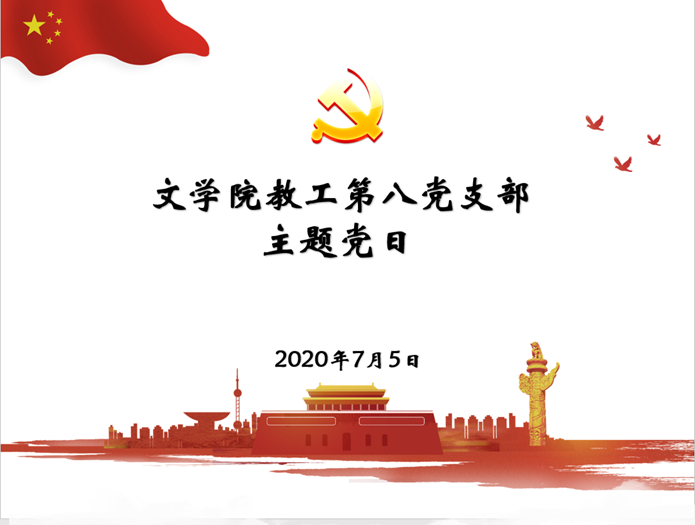 7月5日下午,文学院教工第八党支部在教学三楼3247智慧教室举行主题党日活动,党支部书记徐金主持会议,全体支部成员出席活动。