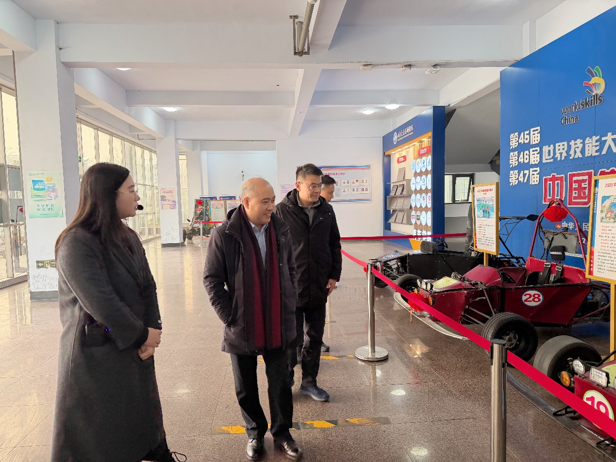 在考察中,任飞带领孙书文一行参观了山东交通技师学院ASEP实训中心、重型车辆车间、智能制造学院实训车间等实训基地,并重点介绍了该校在技能型师资与人才培养、专业建设与课程改革、课程思政建设、服务乡村振兴等方面的先进经验和突出成绩。