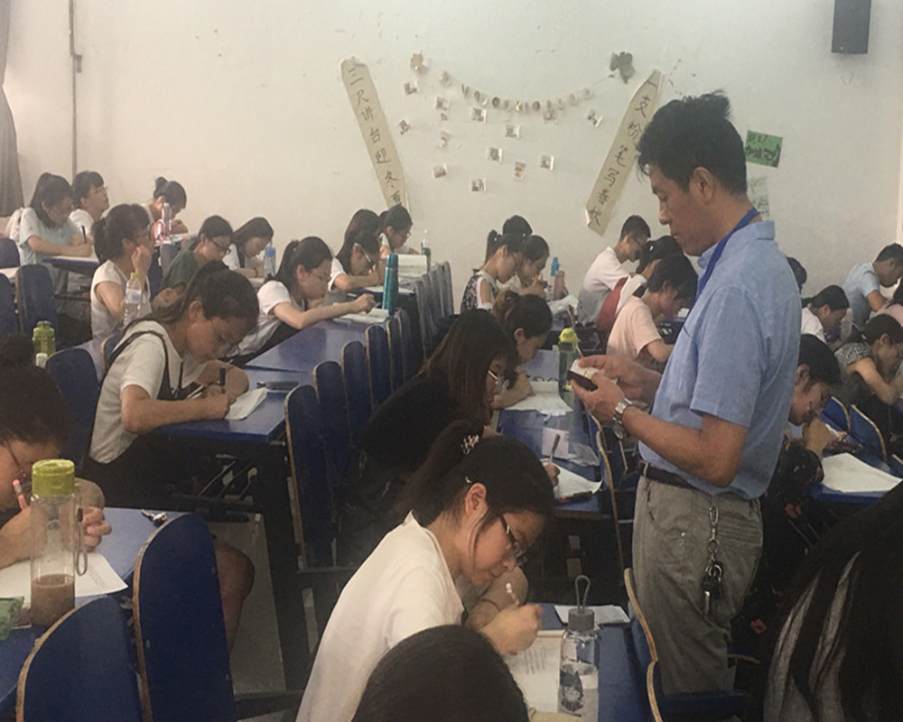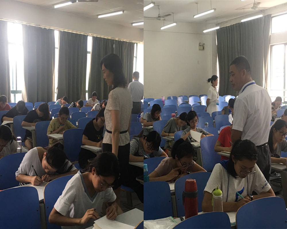 考风直接反映着学院的教风和学风,考风考纪更是学生的红线。文学院领导对此高度重视,从考前教育到考试安排都严格遵守学校相关规定。首场考试期间,文学院领导亲自巡查各考场,充分了解考情。贾海宁书记高度关心同学们的考试状态,观察同学们答题情况的同时,与监考老师及时沟通交流。杨存昌院长则高度重视考场规范问题,叮嘱各考场监考老师,在接下来的考试中一定要提前清理考场遗留的书本材料等物品,并在开考前提醒同学们提前整理存放好自己与考试相关的物品,以免造成违纪嫌疑,为全体同学营造一个公平公正的考试环境。考试期间正值酷暑考场气温较高,同学们严守考试纪律、沉着冷静应考,考场秩序井然,未出现任何违纪作弊行为,彰显了文学院的优良考风在接下来的考试中,文学院将继续加强对考风考纪的检查力度,师生合力,共同完成好期末考试工作。