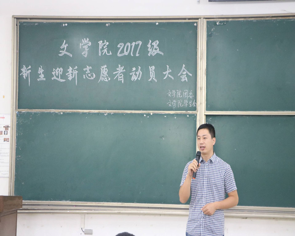 9月1日上午,文学院于长清湖校区综合教学楼C区218教室举行2017级迎新志愿者动员大会。本次大会由文学院团委书记、2016级辅导员李金波主持,文学院党委副书记巩固、2014级辅导员杜云飞、2017级新生辅导员李嘉琦与文学院主要学生干部共同参加了此次动员大会。