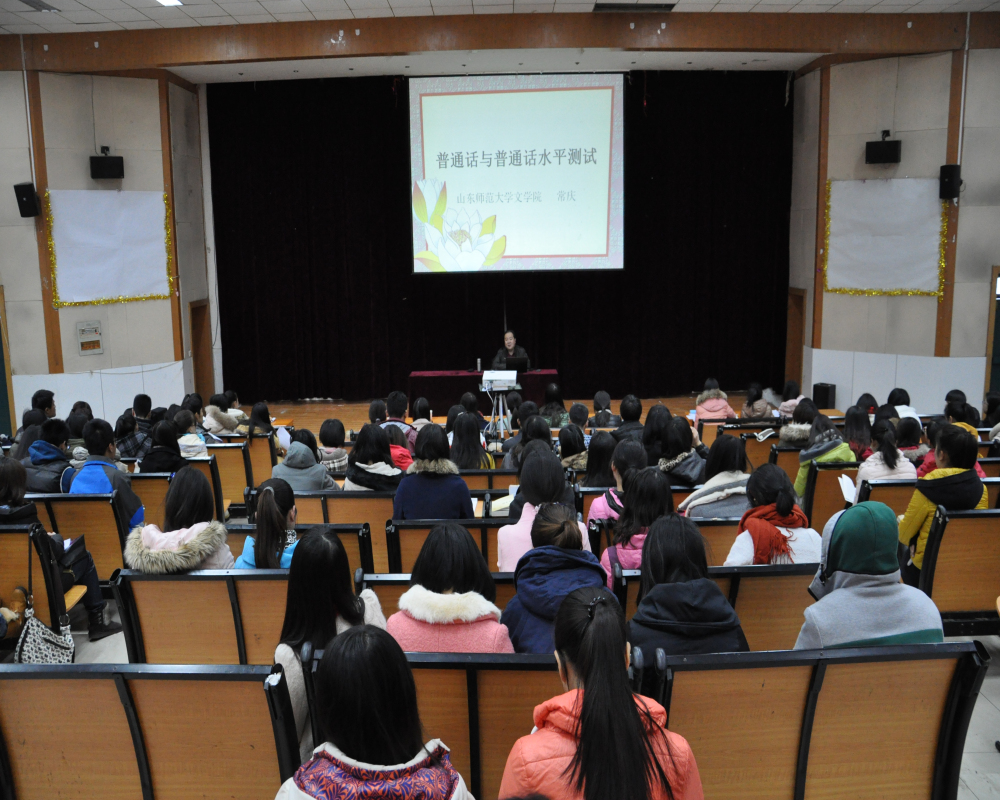 为了进一步提高同学们的普通话水平,加深对即将到来的普通话水平考试的了解。1127日,文学院于长清校区综合教学楼C101报告厅举行了普通话知识讲座。文学院副院长常庆担任主讲人,文学院2013级辅导员徐金及2012级、2013级部分同学们共同聆听了此次讲座。