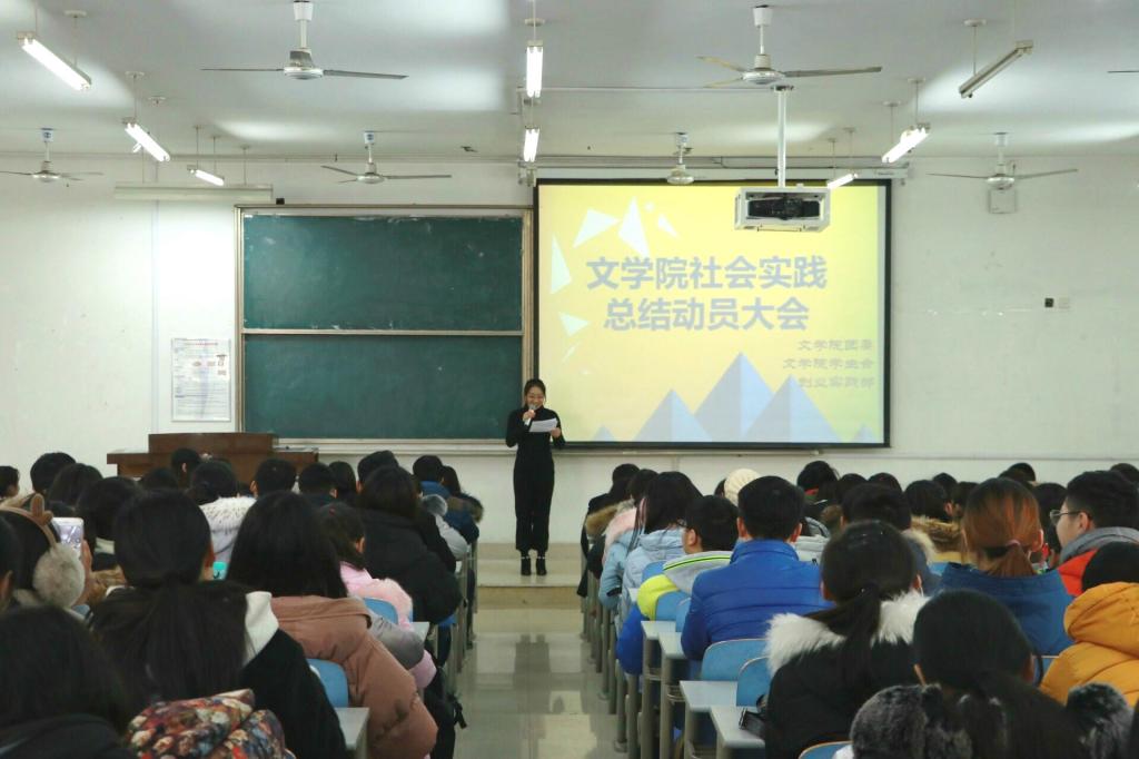 1月26日,文学院于长清湖校区综合教学楼C区220教室举办社会实践总结动员大会,文学院党委副书记巩固,团委书记、2016级辅导员李金波,2015级辅导员张婷, 2017级辅导员李嘉琦到场聆听,2016级、2017级二百余名同学参加此次大会。